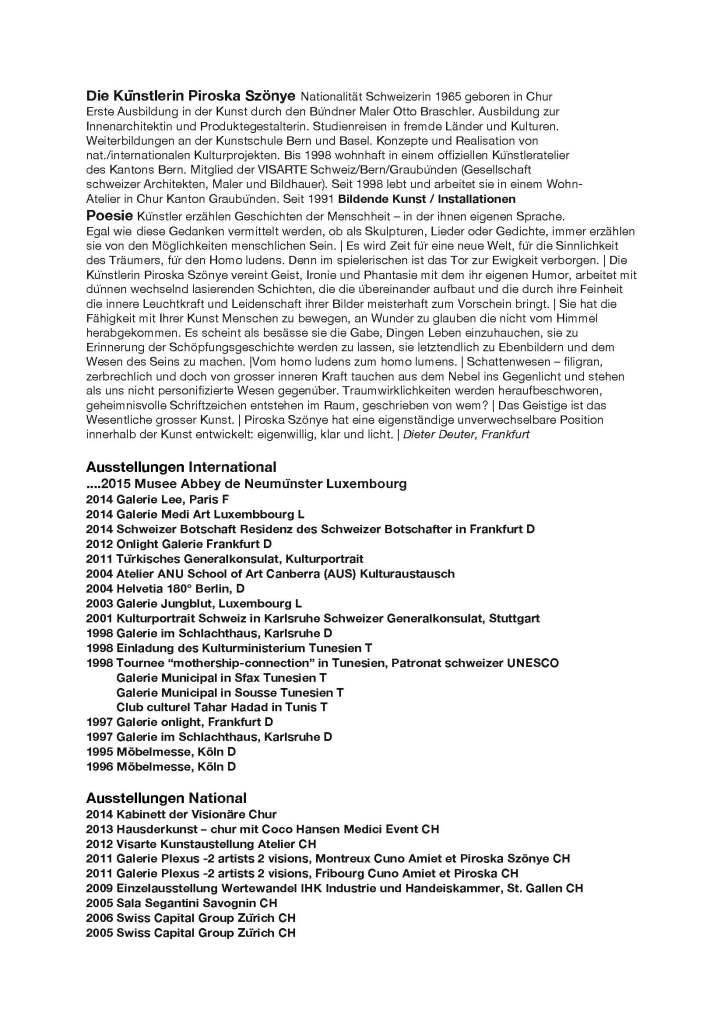 D-Die Künstlerin Piroska Szönye geboren 1965 in der Schweiz_Seite_1 Published 13. August 2014 at 1654 × 2339 in life of Pi….. Deutsch CV